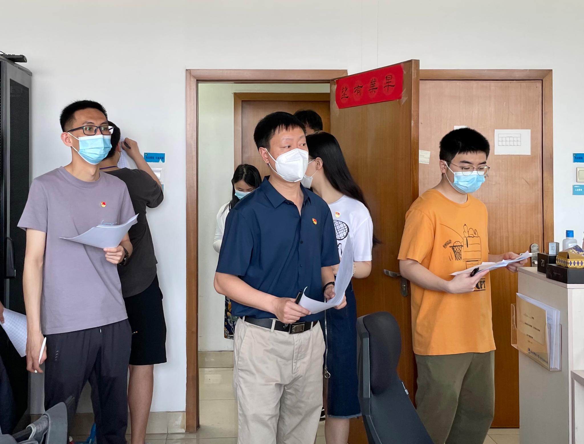 5月18日下午校园出现疫情预警突发情况,学校迅速启动应急封闭管理预案,学生公寓实行网格化静态管理,区、楼、层应急管理队伍多级联动。kaiyun官网辅导员吴京宸、武兆辉、徐翔、董琳琳、吕佳蔚、郭子琳多位驻校老师值守学十、学四、学十三等公寓楼,采用走访宿舍与线上接龙相结合的方式统计各层宿舍数量与用餐需求,并进行取餐送餐工作,排查未及时返回宿舍的人员情况,安抚学生情绪。